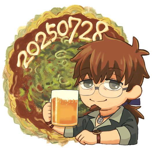 公式に倣ってほっぺに斜線3本も入れてみたんだけど、ほろ酔いとか照れを通り越しあまりに幼い感じになり「ビール片手にお好み焼き食べてる成人男性がこんな表情でいいのか!?」という気持ちになったので消しました笑 照れ…